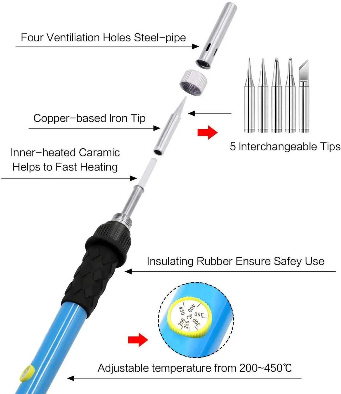 220V 60W Adjustable Temperature Soldering Iron With 5 Soldering Tips solder wire Rework Station Stand Tweezers Repair ToolsBuy Now On Aliexpress